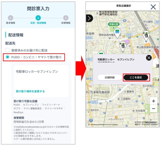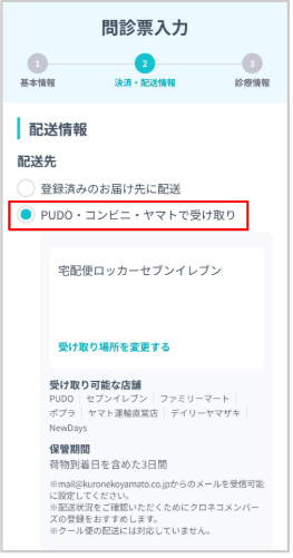 コンビニによっては、PUDOステーションやヤマトの受け取りサービスに対応していない店舗もあります。予約画面で対象店舗が調べられます。
