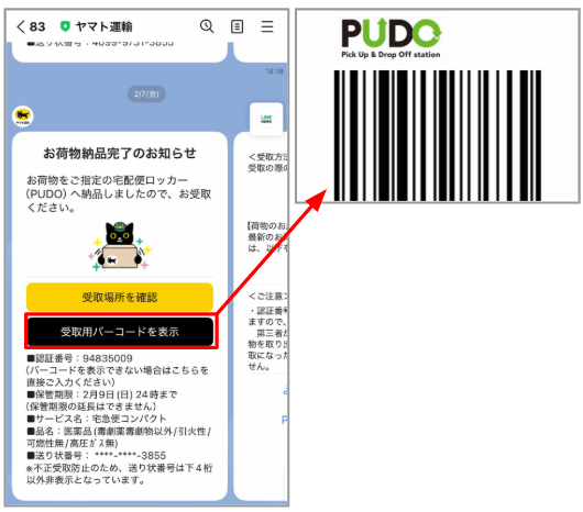 - A. (PUDO操作画面の写真を再掲し)LINEのバーコードをかざすだけ、たった10秒で終わります。スマホ操作が苦手な私でも一瞬でした。