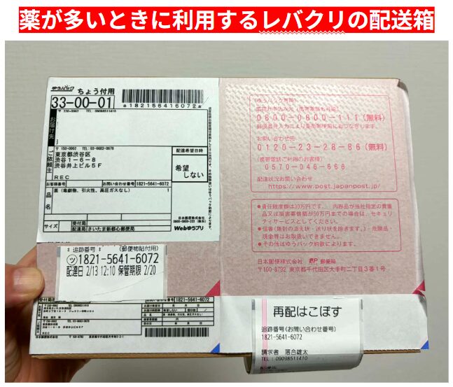 レバクリでは、薬を小箱に入れることで、配送中の衝撃から守る工夫がされています。実際に受け取った方の口コミでも「きちんと整理されていて、薬の状態も完璧だった」という声が多く見られます。