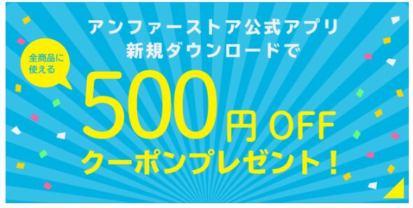 アンファーストア公式アプリを初めてダウンロードすると、全商品対象の500円OFFクーポンがもらえます。