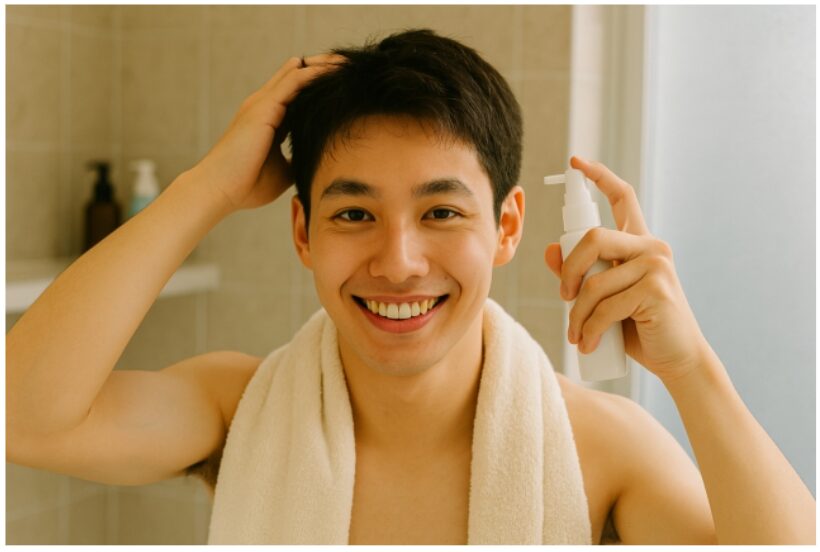 育毛シャンプーで今ある髪を守り、ミノキシジル配合薬剤で新しい髪を生やす。この二本柱のアプローチを、4ヶ月間継続する。